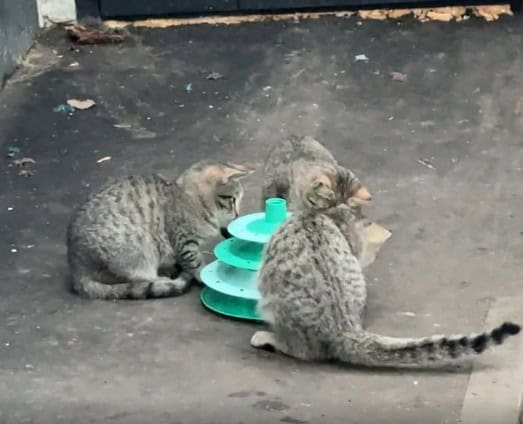 At first, the cats were cautious. Stray animals learn quickly to be wary of human hands, as not every encounter brings kindness.