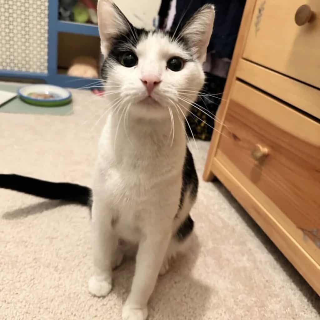 But one small black-and-white stray cat had no door waiting for her and no human calling her name.