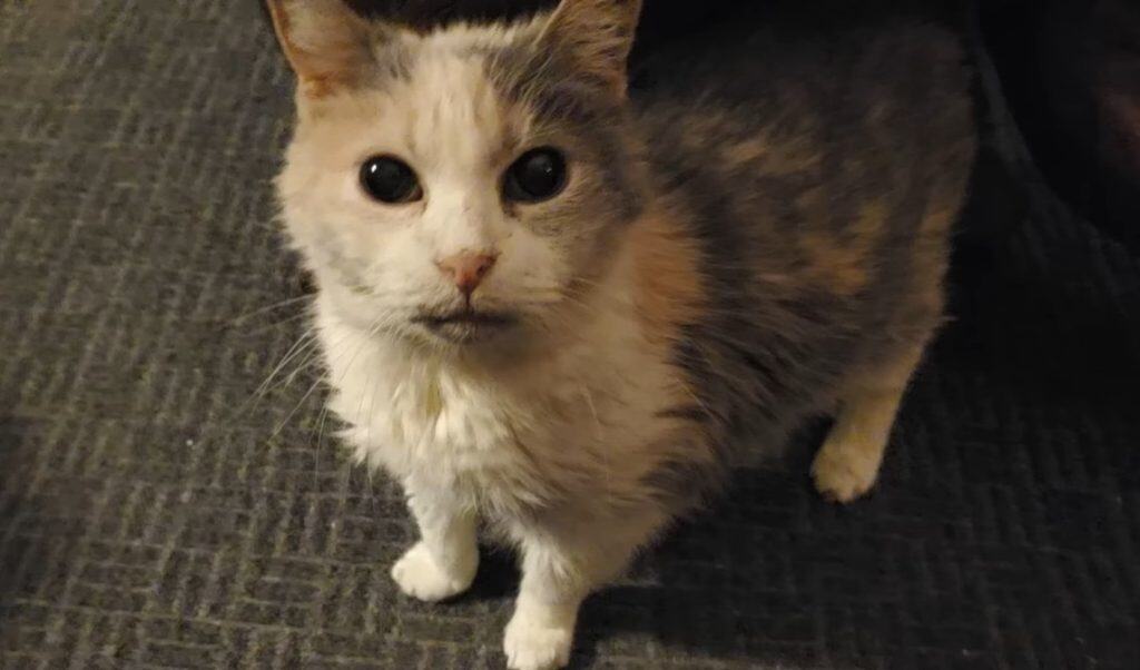 The people from Meowy Nugget Society spoke gently as they lifted her.