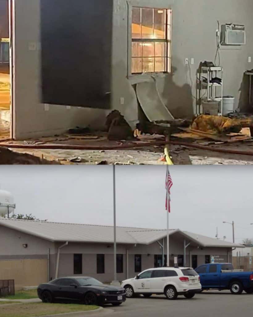 Sirens filled the air as fire trucks arrived, red lights cutting through the smoke.