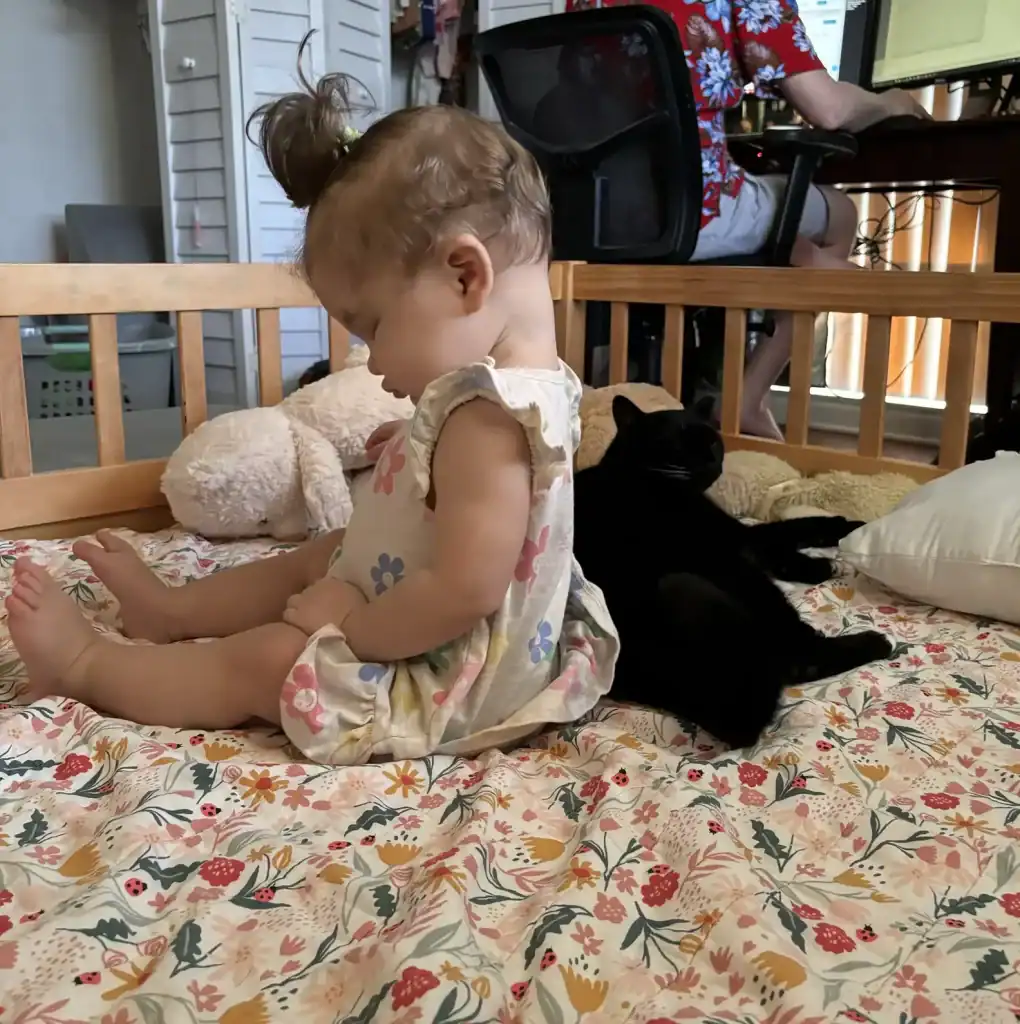 The soft padding of paws, the low hum of purring — they were signals that her best friend was close. Hearing that familiar sound made her giggle every time.
