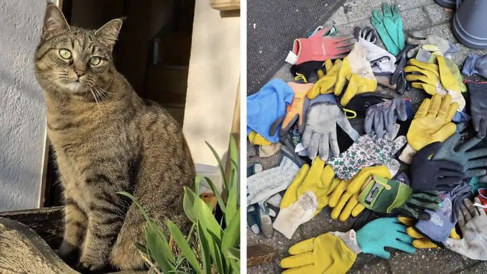 She may never know it, but her little habit has given her town a story they’ll be retelling for years — the tale of the cat who couldn’t resist gloves.