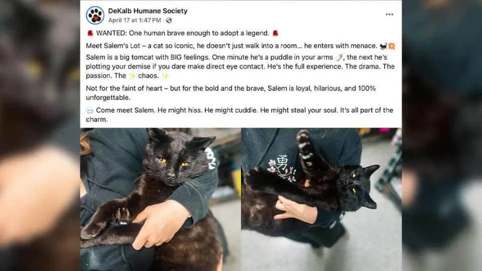 Behind all the jokes and exaggerated stories, Salem is still a cat waiting for someone to love him forever. His personality might be bold, but his need for a home is no different from any other shelter pet.