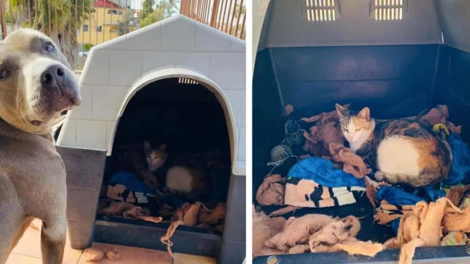Confused, Flores stepped outside. Hades barked once, then turned his head toward his doghouse. That’s when Flores saw her — the stray cat, curled up inside the wooden shelter that used to belong only to Hades.
