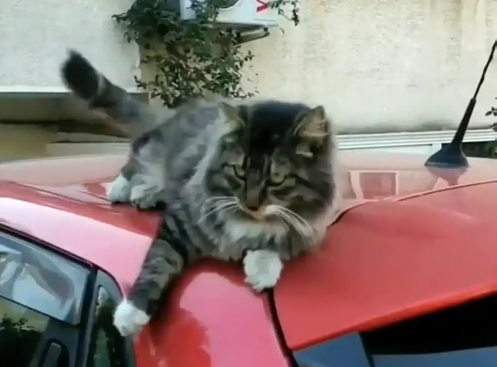 Now, each morning when she steps outside, she expects to see him there. Some days he greets her with a gentle purr; other days, he guards the car like a lion.