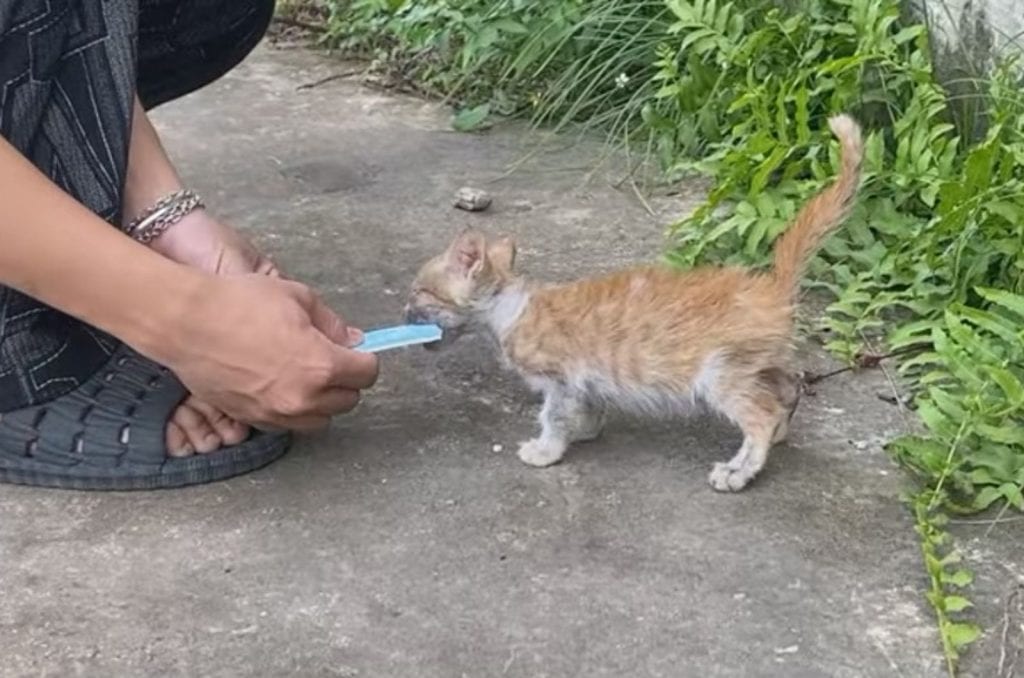The little kitten looked far too young to be alone, her body so frail that he could see the sharp outline of her ribs through her dirty fur.