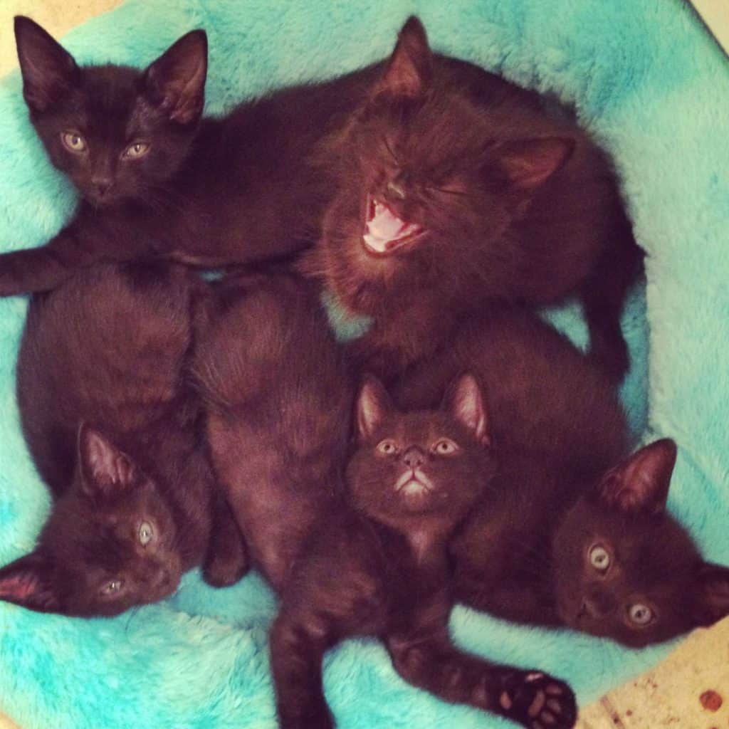 She cleaned each one gently, drying their soft black fur until it gleamed.