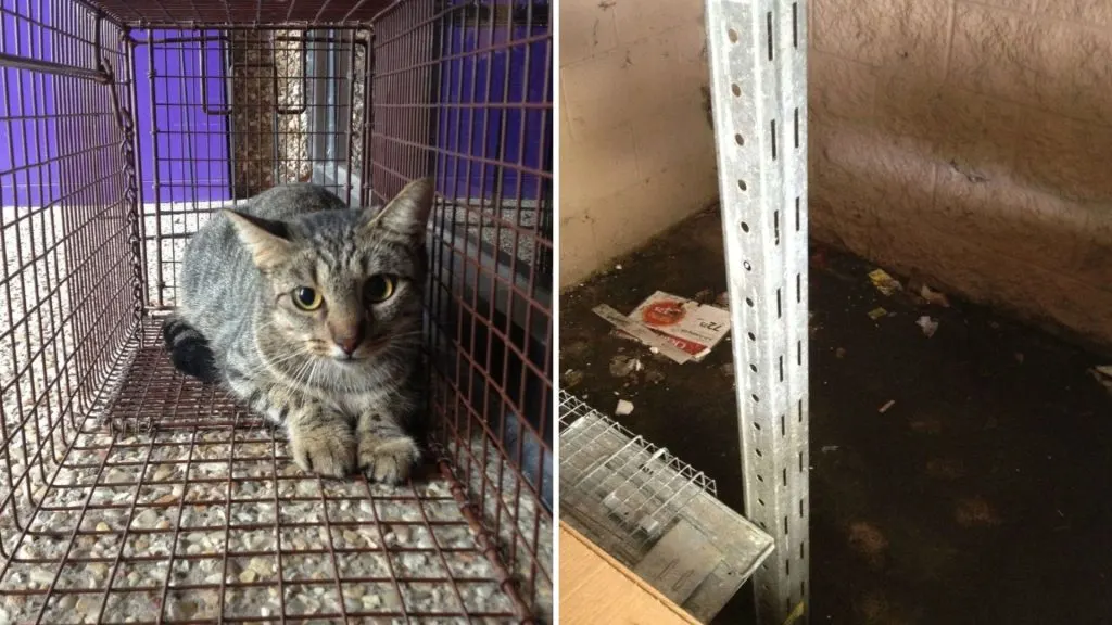 There, lying in a puddle that was almost half an inch deep, was a terrified mother cat.