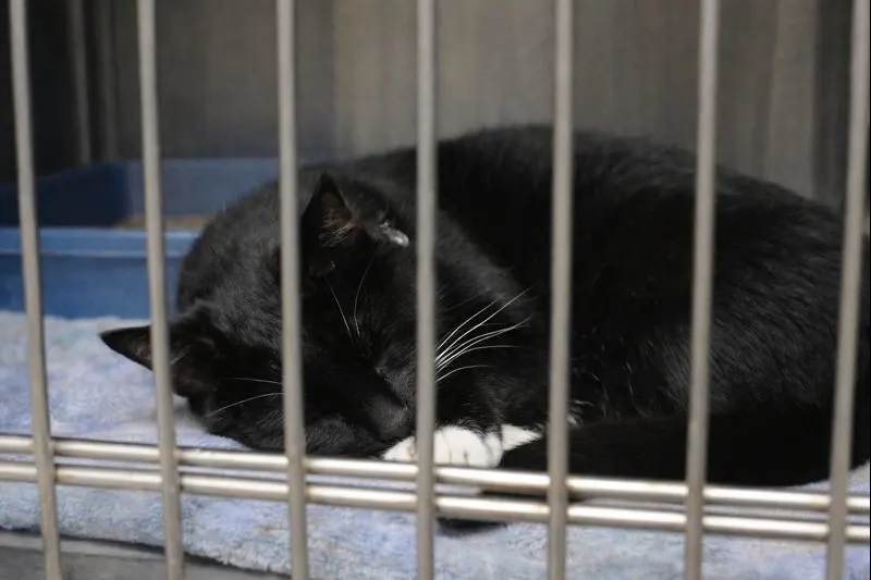 Cats meowed from cages.