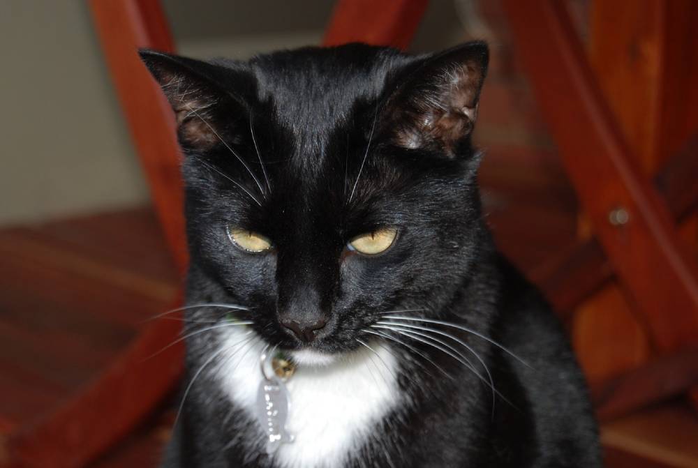 The kitten grew into a strong tuxedo cat.