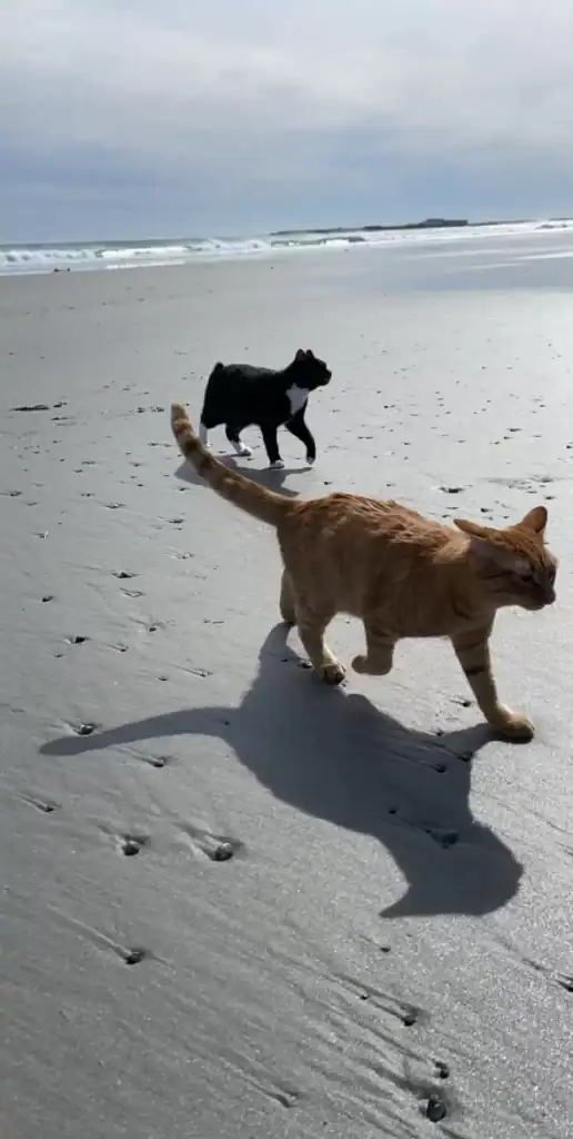 A few minutes into the adventure, the wind suddenly picked up. A strong gust blew across the beach, ruffling Pumpkin’s fur in every possible direction.