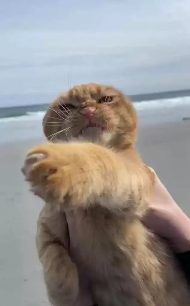 Pumpkin didn’t hesitate for a second when his paws touched the sand. He sniffed the sea breeze with wide eyes, then trotted forward as if he’d been waiting his entire life to visit the shore.