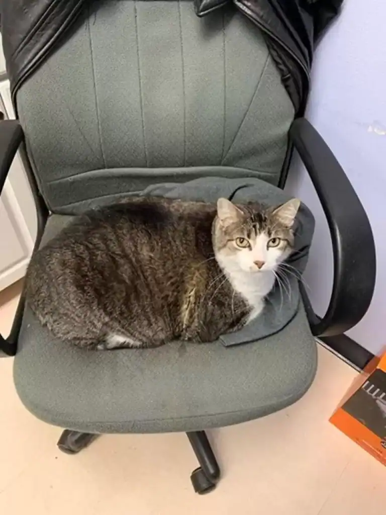 When visitors step inside the Furry Friends Animal Hospital in Louisiana, they’re often met with a sight they can’t forget — a cat so round and relaxed that he looks like he belongs on a couch instead of a clinic counter.