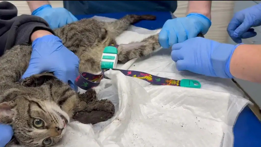 Wrapped carefully and lifted with care, Tygryk was rushed away from the streets that had almost claimed his life.