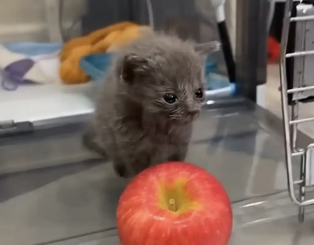 Among the group was one tiny girl who looked more like a newborn than an 8-week-old kitten. Her little body was fragile, barely the length of a hand, her fur soft like down feathers.