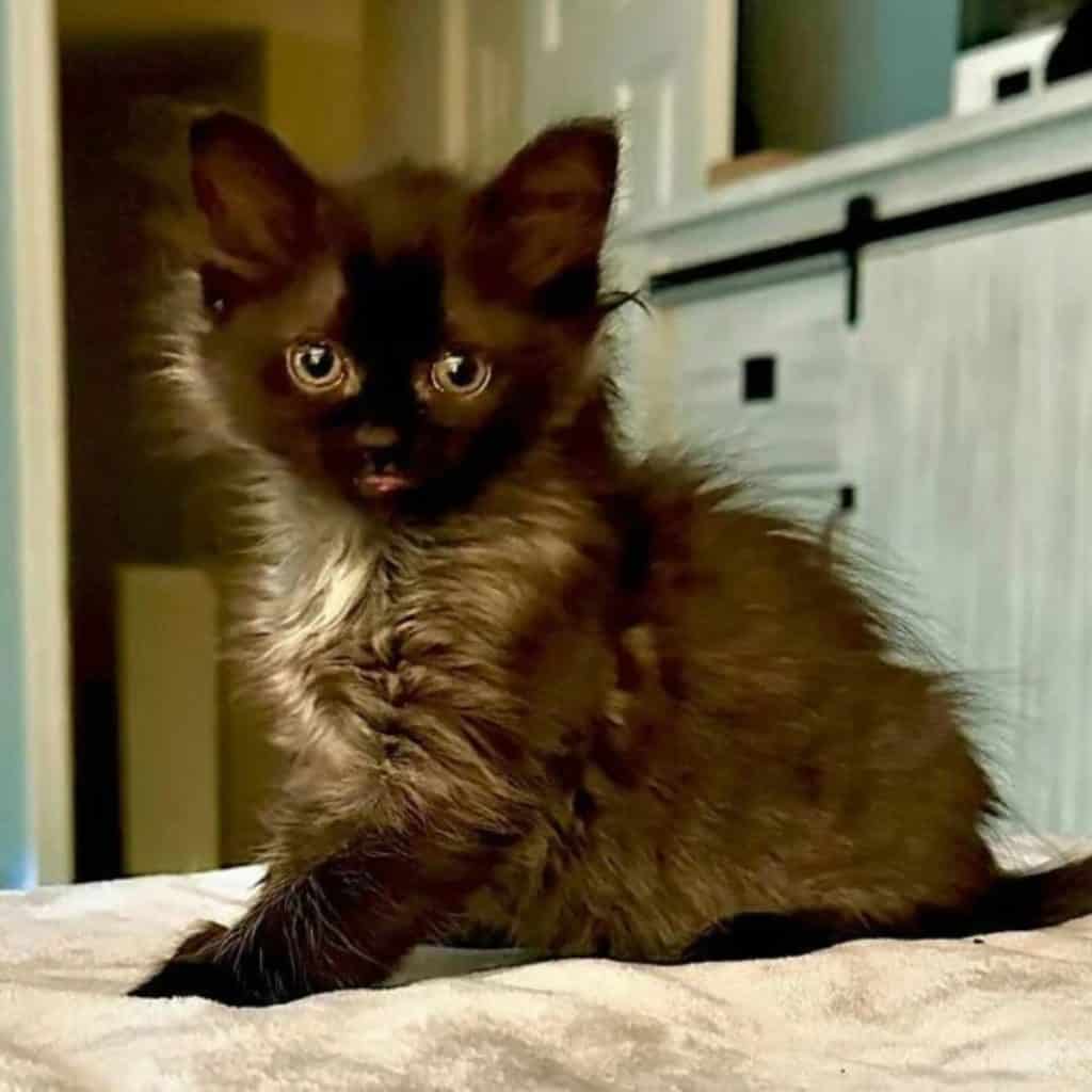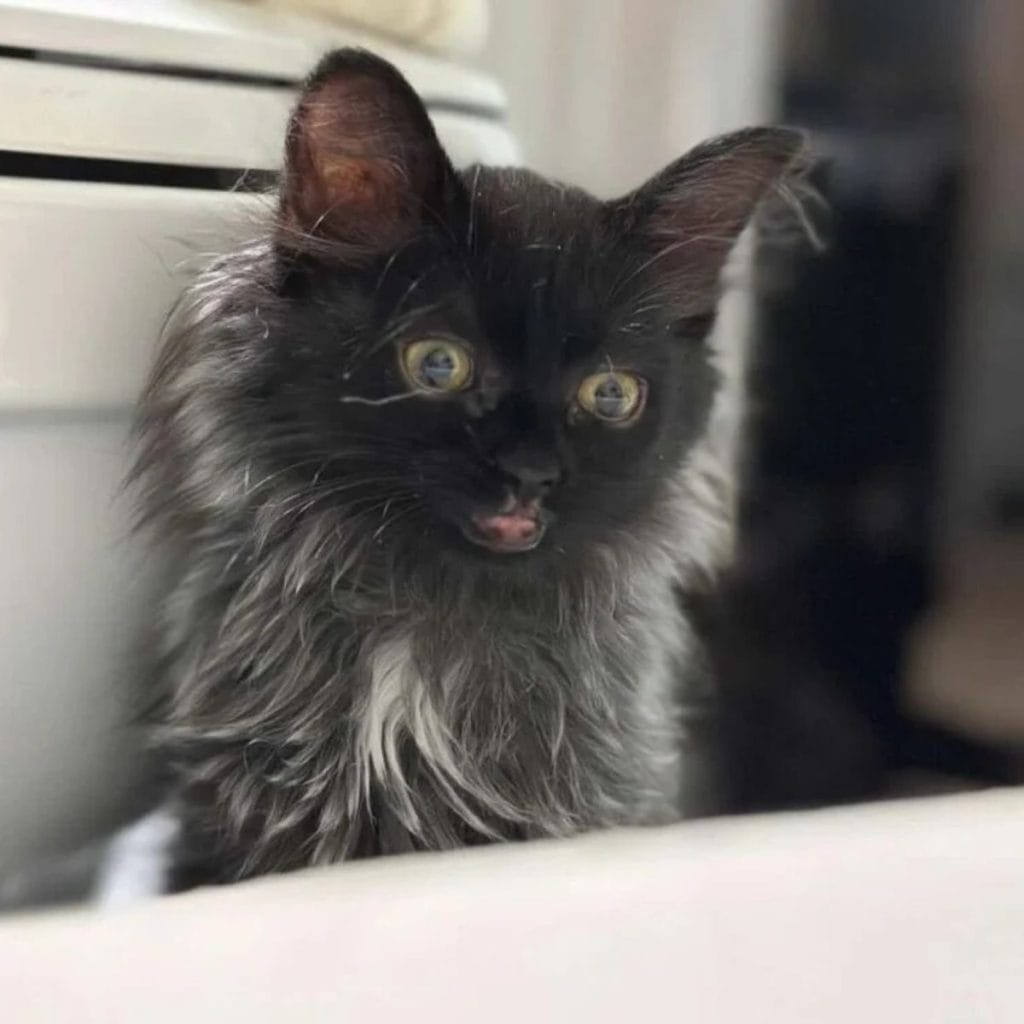 As the weeks passed, Bertie’s body changed almost as beautifully as her story. Her once-black fur took on a soft smoky hue that shimmered under the light, giving her a one-of-a-kind charm. Her eyes, bright and full of mischief, told a story of triumph.