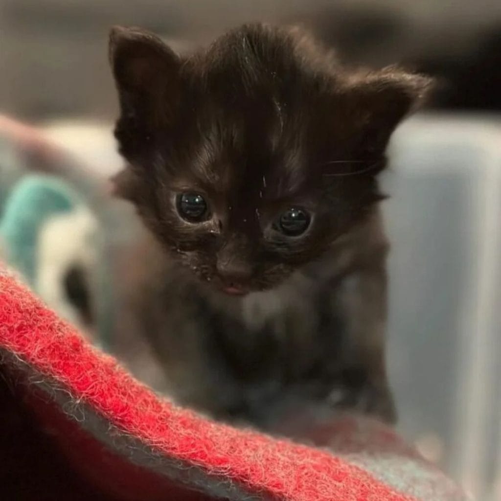 When most newborn kittens are nestled close to their mothers, warm and safe, one tiny black baby entered the world with no one beside her. Barely four days old, her cries echoed softly into the air, calling for help that—by a stroke of luck—was on its way.