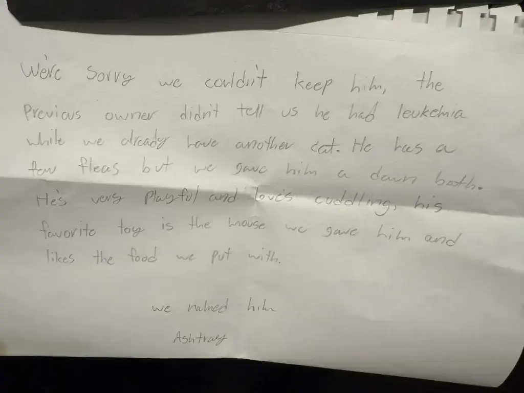 The note was written in careful handwriting, full of sadness and guilt. It explained that the kitten had tested positive for feline leukemia, a contagious illness that can spread easily to other cats.