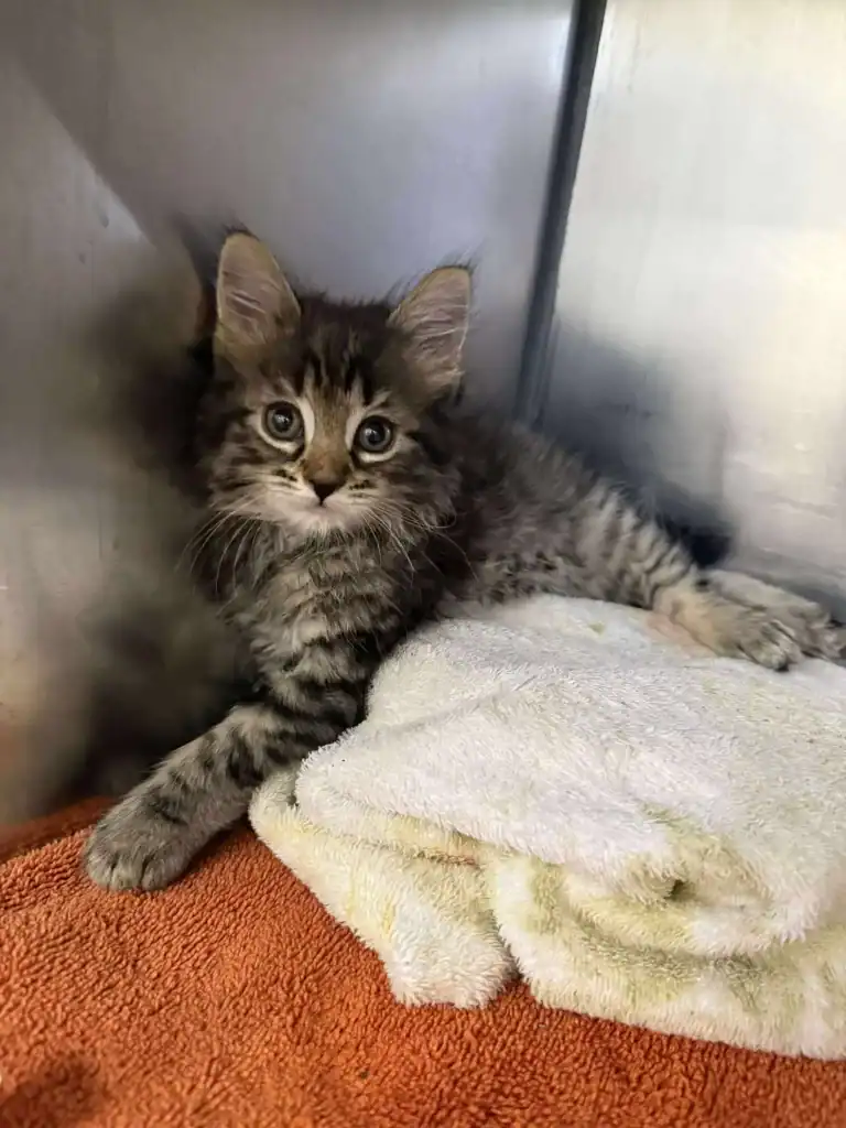 Though a bit thin, he was alert and curious, his tiny meows filling the room. They renamed him Freddy Krueger — a lighthearted nod to Halloween that gave everyone a reason to smile after such a heavy morning.