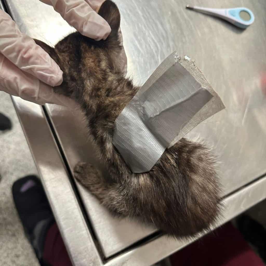 Roo, weighing barely 1.5 pounds, was the most vulnerable. Her tiny body, wrapped painfully in duct tape, showed signs of severe distress and trauma.