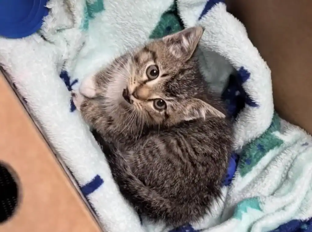 Their next stop was a nearby animal hospital, where veterinarians examined the kitten for injuries. Miraculously, aside from exhaustion and mild dehydration, he was in good shape.