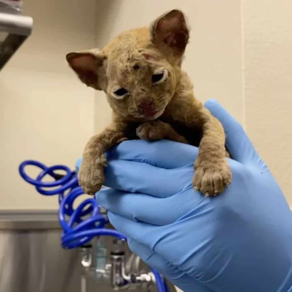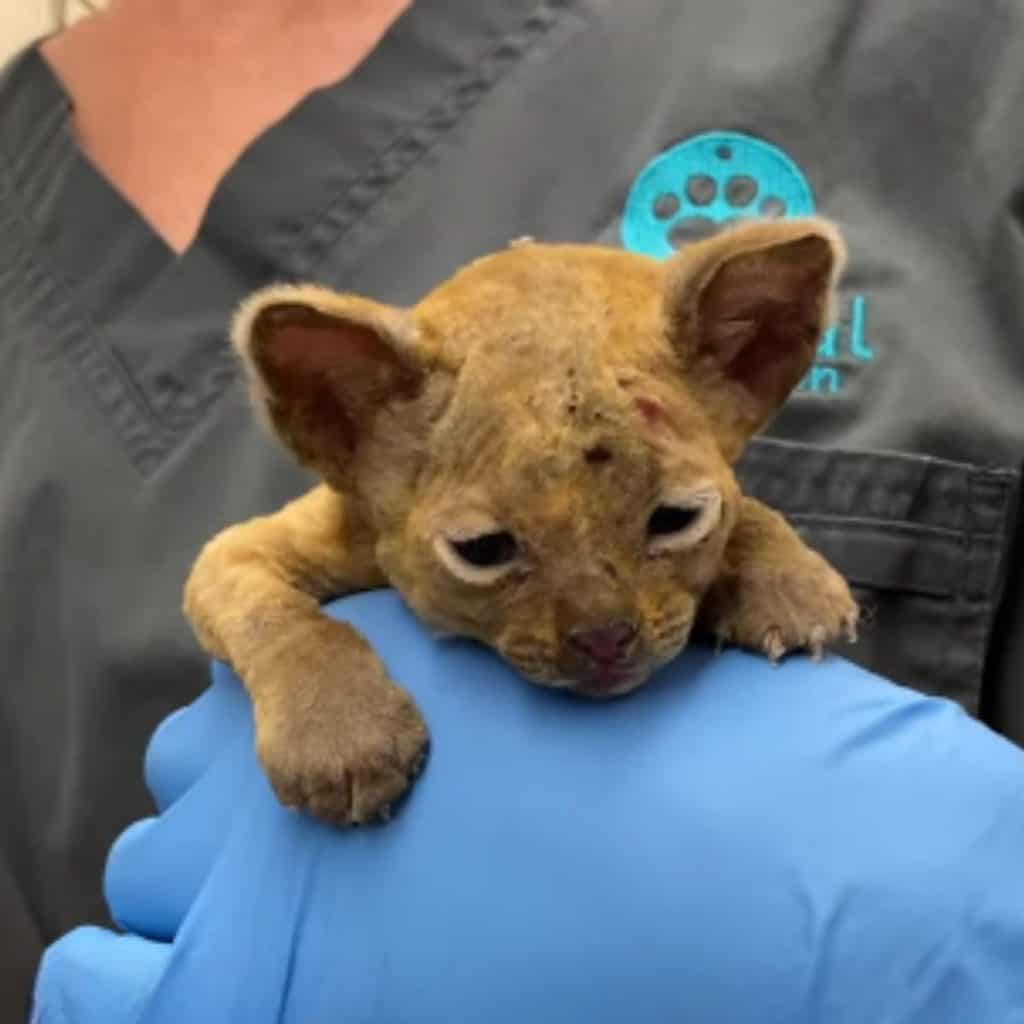 Her tiny body trembled, her fur was singed, and every movement seemed to hurt. The staff knew they had to work fast if she was going to have a chance.