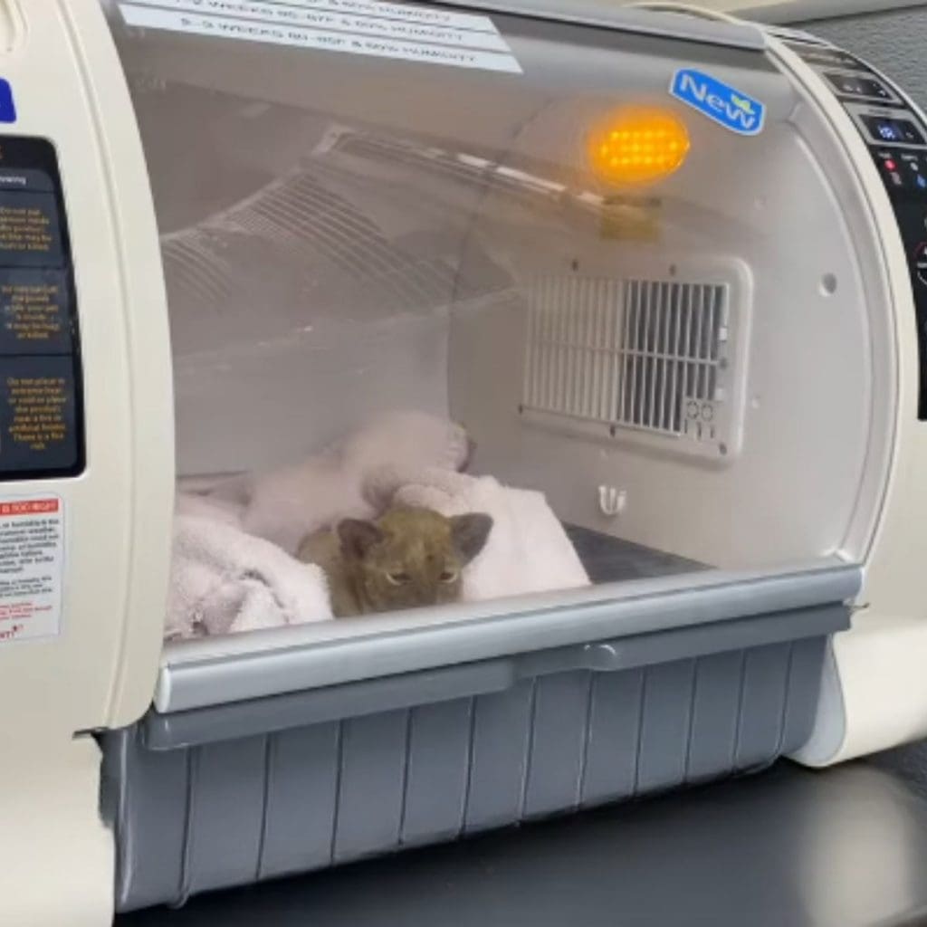 Warm blankets, soothing voices, and pain medication were given right away. She was placed inside an incubator to help her keep her temperature stable, something young kittens often struggle to do on their own.
