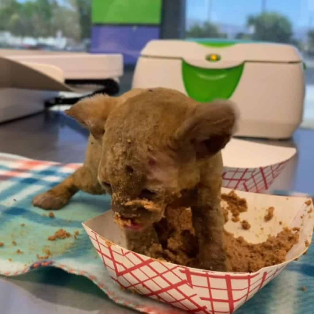 Barely four weeks old and far too small to defend herself, the little one had no way to escape the heat or the chaos around her. Her future looked heartbreakingly uncertain until a kind stranger spotted her, scooped her up, and rushed her away from the burning debris.