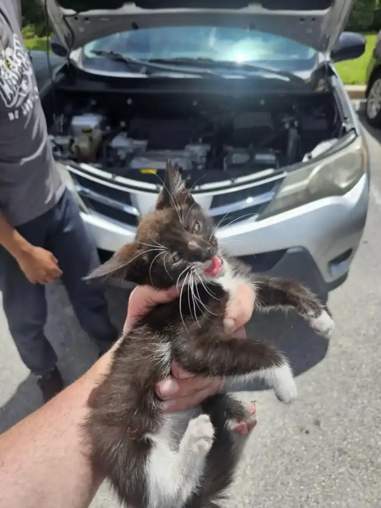 The kitten was trapped in the vehicle’s bumper, and the scorching temperature inside could quickly become unbearable. Matthis knew he had to move fast — but he also knew he couldn’t touch the car without finding its owner first.