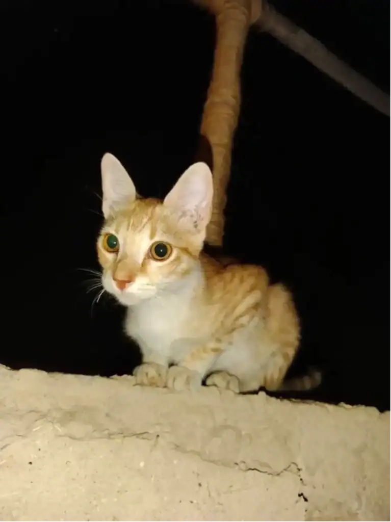 The kitten stood outside the tent, quiet and still, as if she had been waiting her whole life for this exact moment.