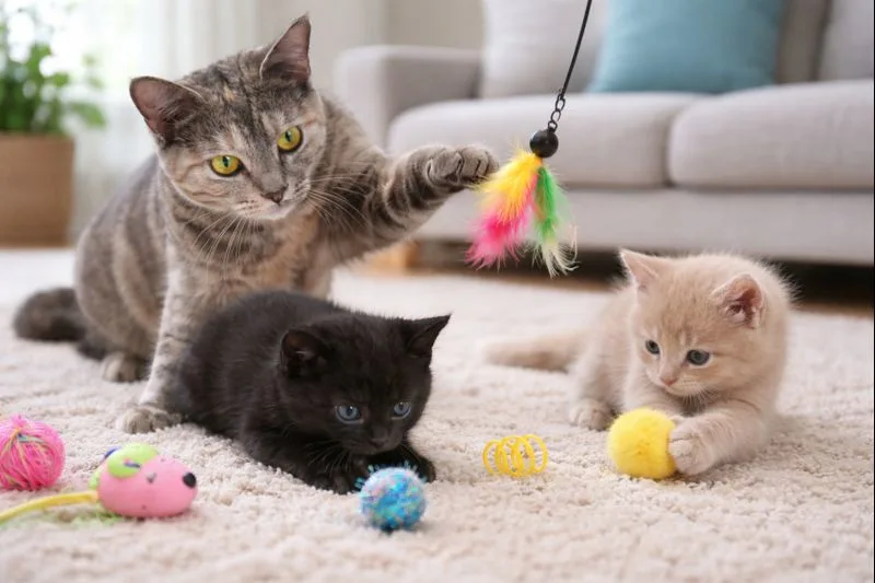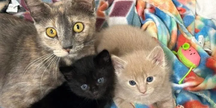 Her kittens, now eight weeks old, tumbled forward with tiny confidence.