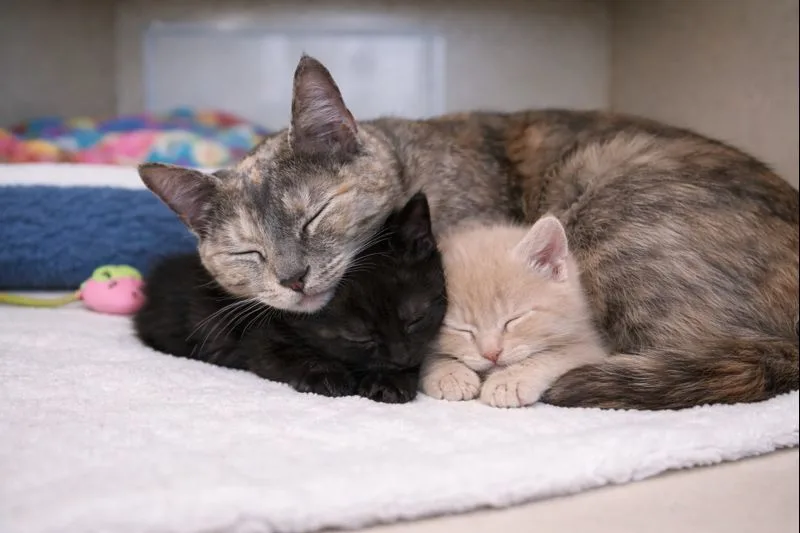 Her kittens, now eight weeks old, tumbled forward with tiny confidence.
