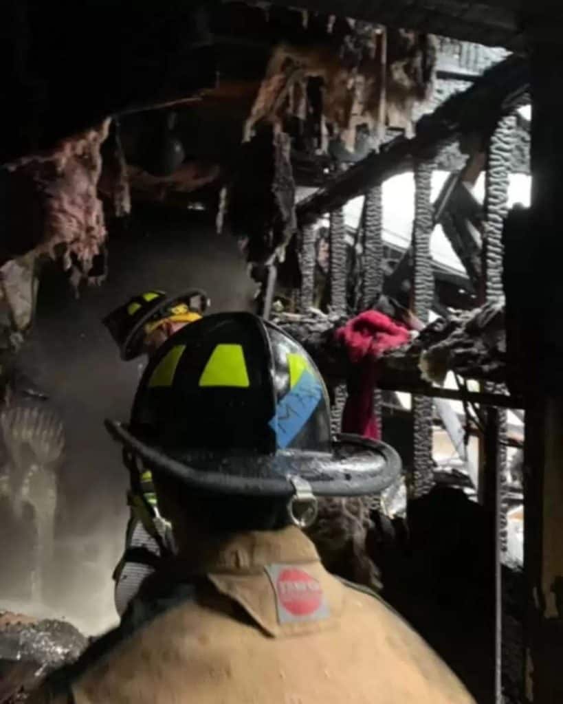 The fire spread so fast that one family upstairs found themselves trapped, unable to reach their door through the flames.