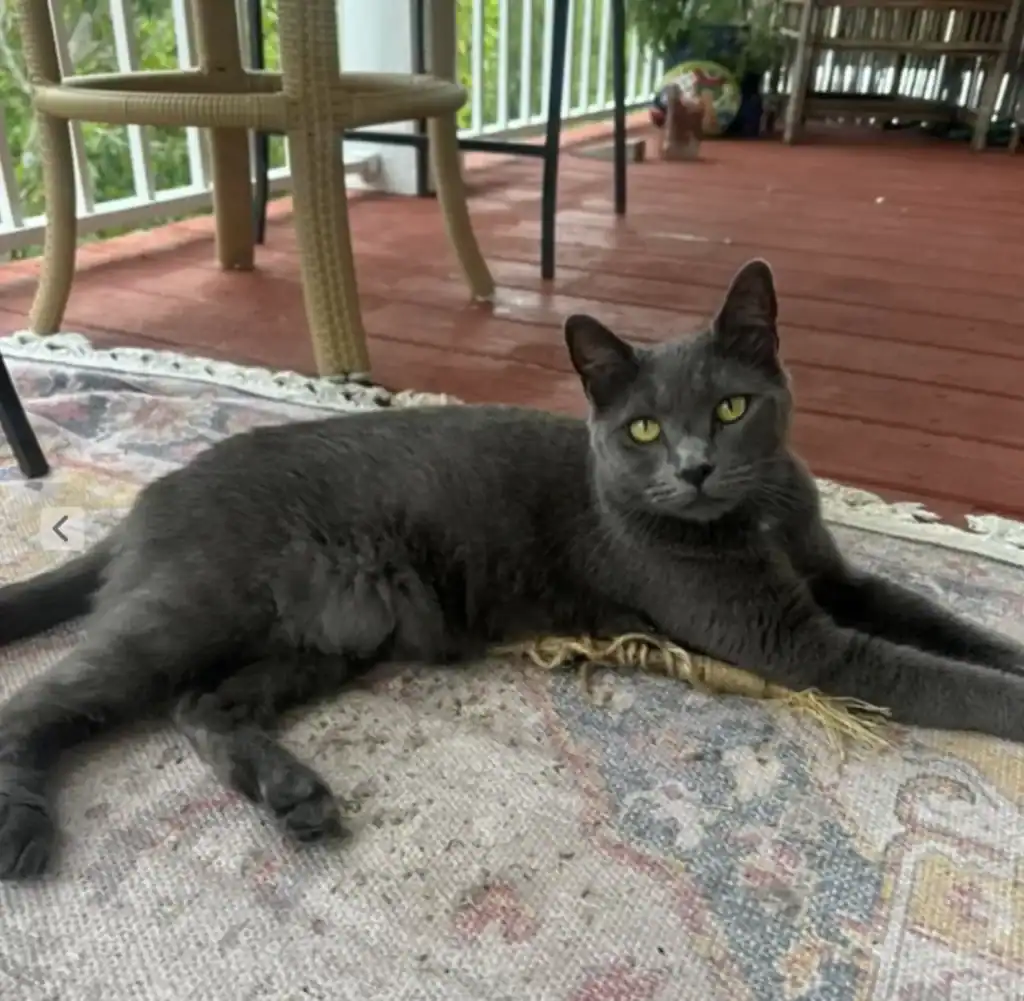 What surprised them most was Tuna’s calm reaction. Instead of hissing or hiding, he just sat and stared at the intruder, his tail flicking lazily.