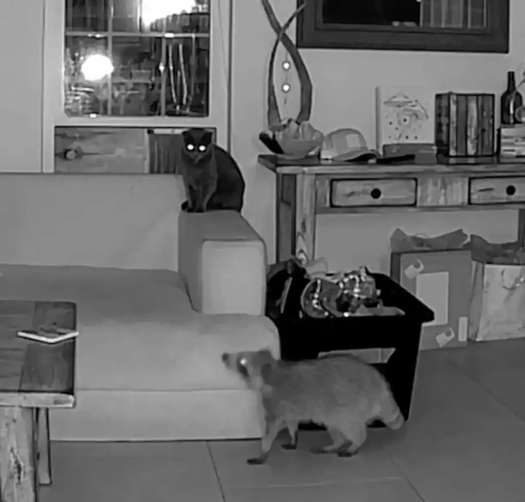 And for the Youngs, it’s a story they’ll be telling for years: the night their cats hosted a raccoon sleepover without even blinking an eye.