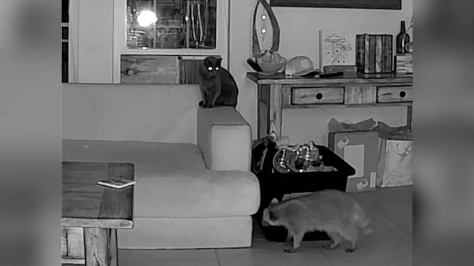 And for the Youngs, it’s a story they’ll be telling for years: the night their cats hosted a raccoon sleepover without even blinking an eye.