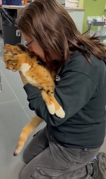 She stroked the cat’s fur gently, as if afraid she might disappear again.