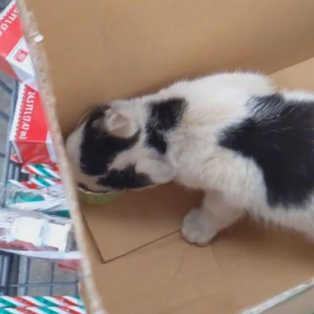 She knew she needed something to transport him safely, so she searched behind the store for a spare box. She found one near a dumpster, bent it into a makeshift carrier, and gently placed him inside. It wasn’t perfect, but it was something.