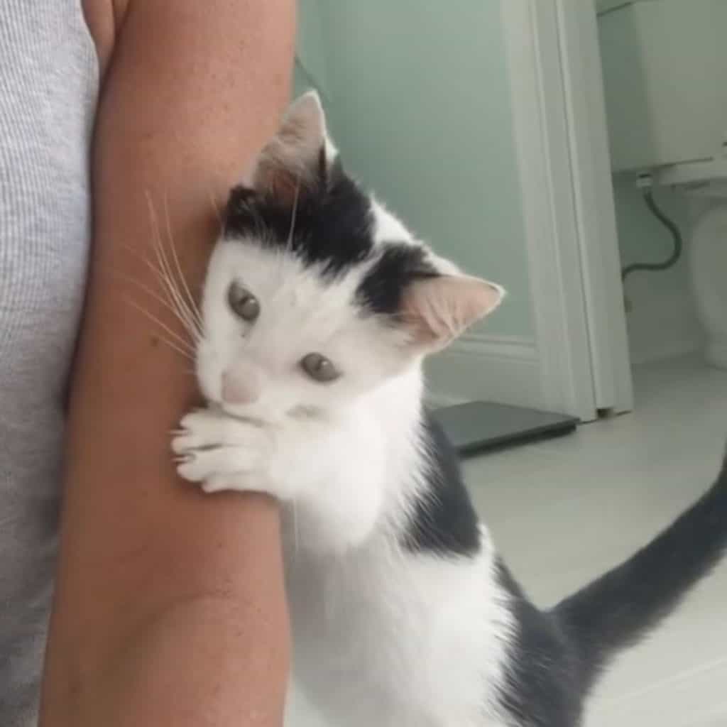 Still, rescuing him wasn’t as easy as she hoped. The kitten pushed his way out at one point, jumping from her cart and sending Annie into a frantic scramble.