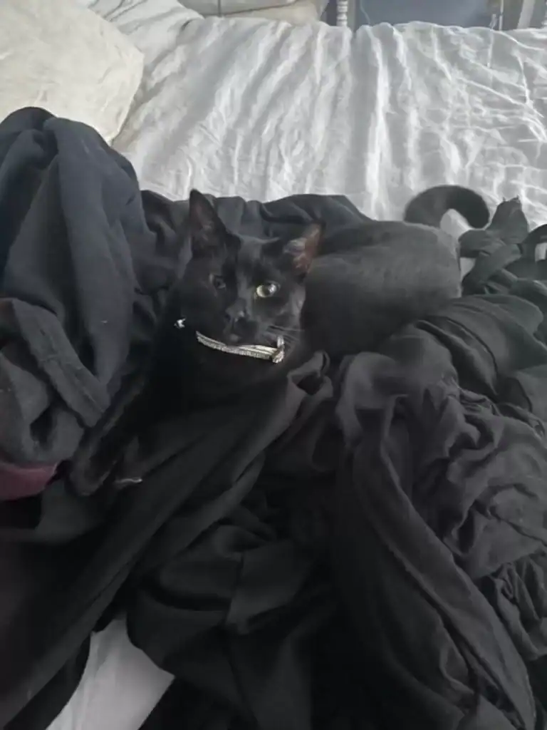 “You’ll find her on my mom’s black purse, or on piles of dark clothes. She disappears completely — until you move, and suddenly she’s right there staring at you.”